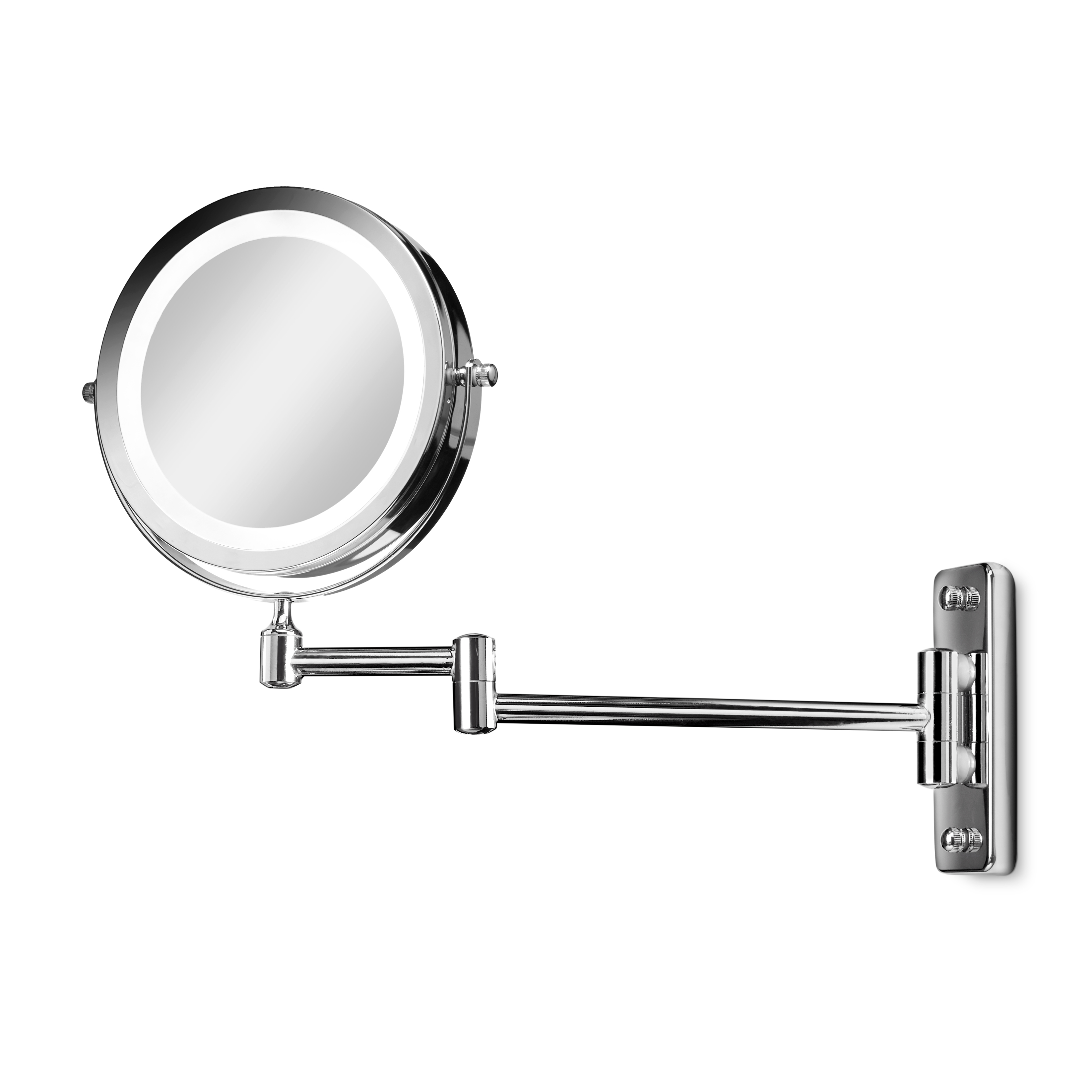 Gillian Jones Dobbeltsidet Vægspejl med LED Lys – Krom, 10x Forstørrelse